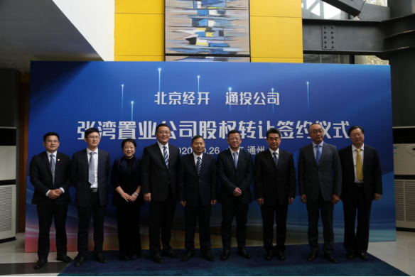 10月26日,通投公司與北京經(jīng)開投資開發(fā)股份有限公司就收購北京經(jīng)開張灣置業(yè)有限公司股權(quán)簽約儀式舉行。通州區(qū)副區(qū)長樓俊峰,北投集團(tuán)黨委副書記、總經(jīng)理、通投公司董事長陳衛(wèi)東,北京亦莊投資控股有限公司總經(jīng)理?xiàng)钗牧嫉阮I(lǐng)導(dǎo)出席。